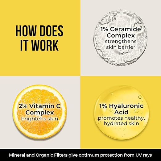 Ceramide & Vitamin C Sunscreen | SPF 50+ Pa+++ | In-Vivo Tested | For Bright Skin & Healthy Glow | Non-Greasy, Quick-Absorbing, No White Cast | UVA/B & Bluelight Protection | For Men & Women | For All Skin Type | 50 g