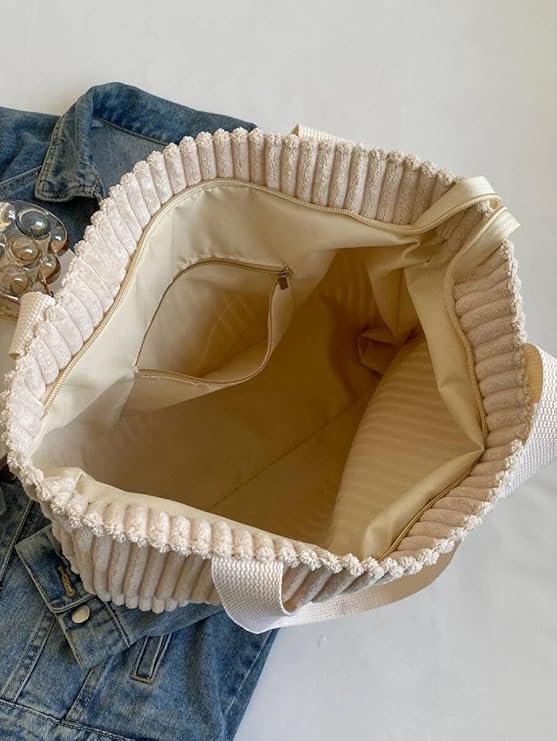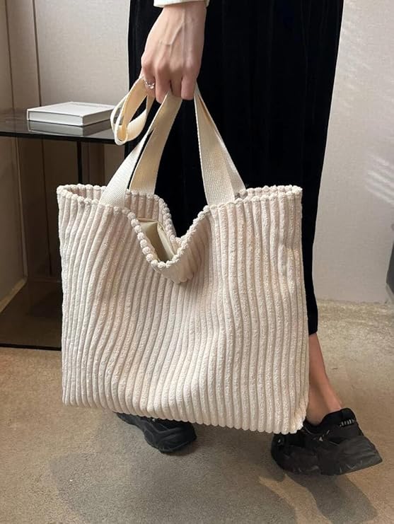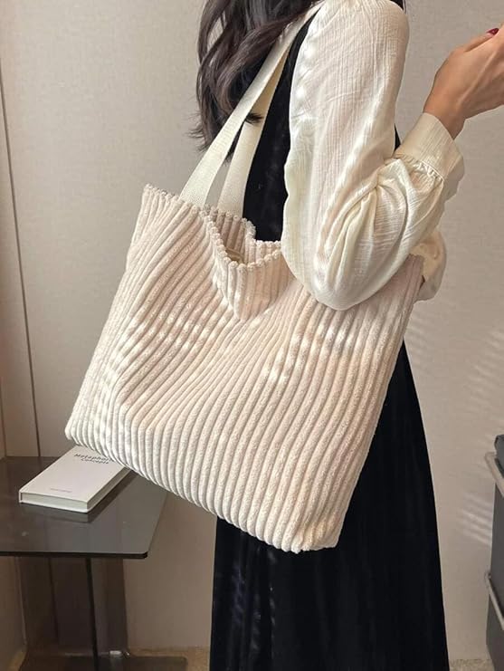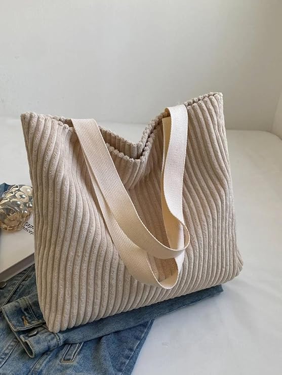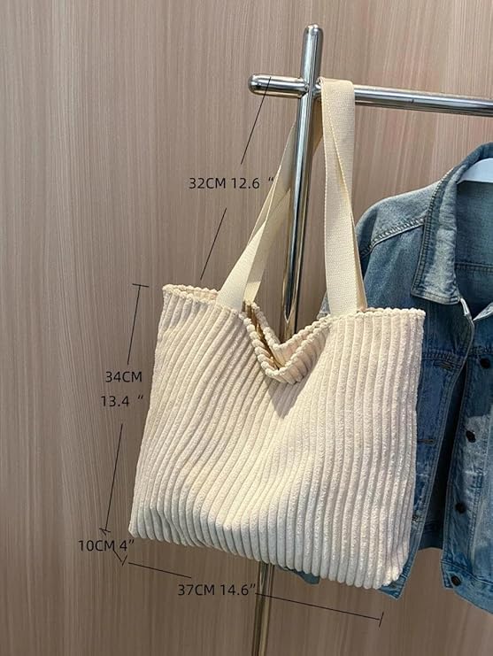Made from quality corduroy, this tote bag is both sturdy and soft. Its chic aesthetic adds a trendy touch to your outfit, making it ideal for casual outings and everyday use.